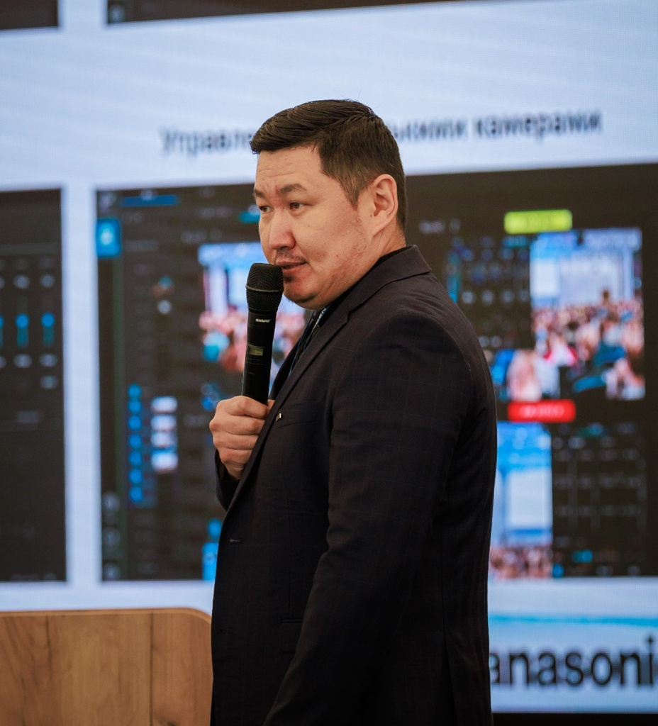 Марлен Алмабаев, ответственный за развитие решений для видеопроизводства и телевещания, представил участникам новинки категории PRO-AV 2025: обновленную линейку 4К-камкордеров AG-CX370EJ и AG-CX20EJ, которые благодаря новому функционалу и расширенным возможностям подключения гармонично дополняют линейку высококлассного оборудования. Также были представлены новые многоцелевые камеры AW-UB50E и AW-UB10E с разрешением 4К, основанные на технологии цифровых камер со сменными объективами и оснащенные новыми функциями для оптимизации процессов производства видео, включая профессиональную модель для использования на кранах и рельсовых системах AK-UBX100. Модель имеет продвинутый автофокус, поддержку современных протоколов, включая SRT и полный NDI, а также подавление муара, что делает ее лучшим решением для театров, залов Парламентов и конгресс-холлов. Была презентована и программа управления для PTZ камер – Media Production Suite и ее новый функционал - возможность размывать лица в реальном времени, что может быть полезно при отказе некоторых присутствующих дать согласие на съемку, и возможность делать автоматические PiP с крупными планами всех выступающих. В заключении Марлен проинформировал о снятии с производства популярной PTZ камеры AW-UE150 и представил преемницу AW-UE150A, которая превосходит своего предшественника и отвечает всем требованиям современного видеопроизводства.